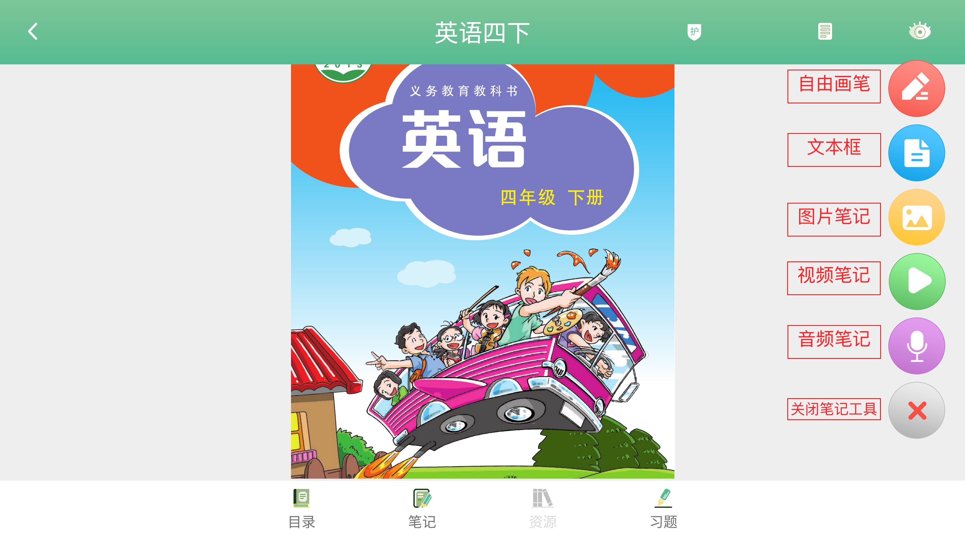 点击课本便可进入相应课本内容页面。单击课本页可显示操作工具栏。